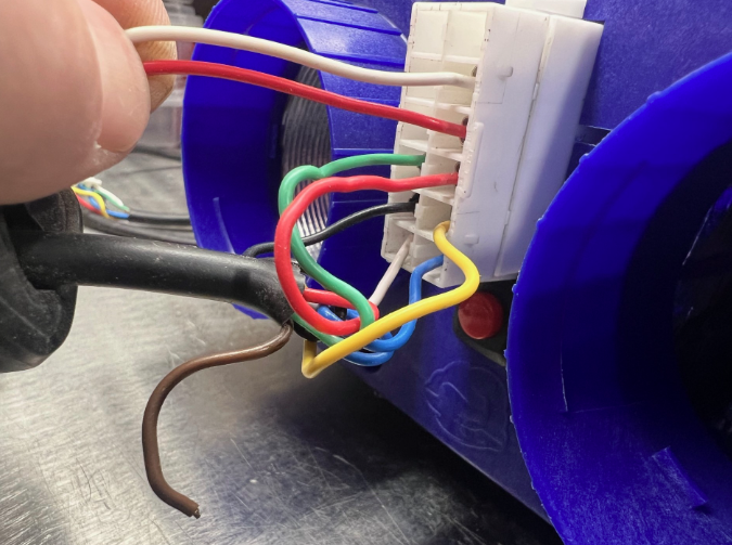Connecting harness inside the blue end cap