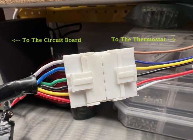 Thermostat wiring harness connection to the thermostat.