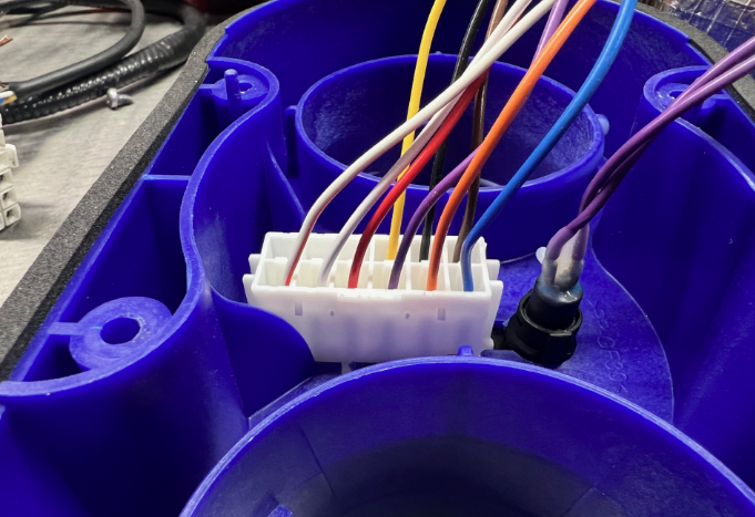 12V wire loom connected to the circuit board