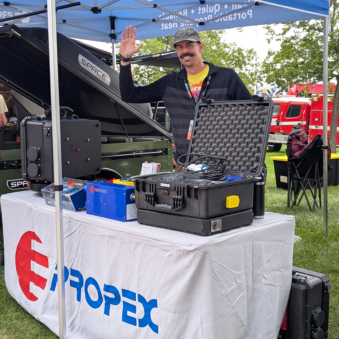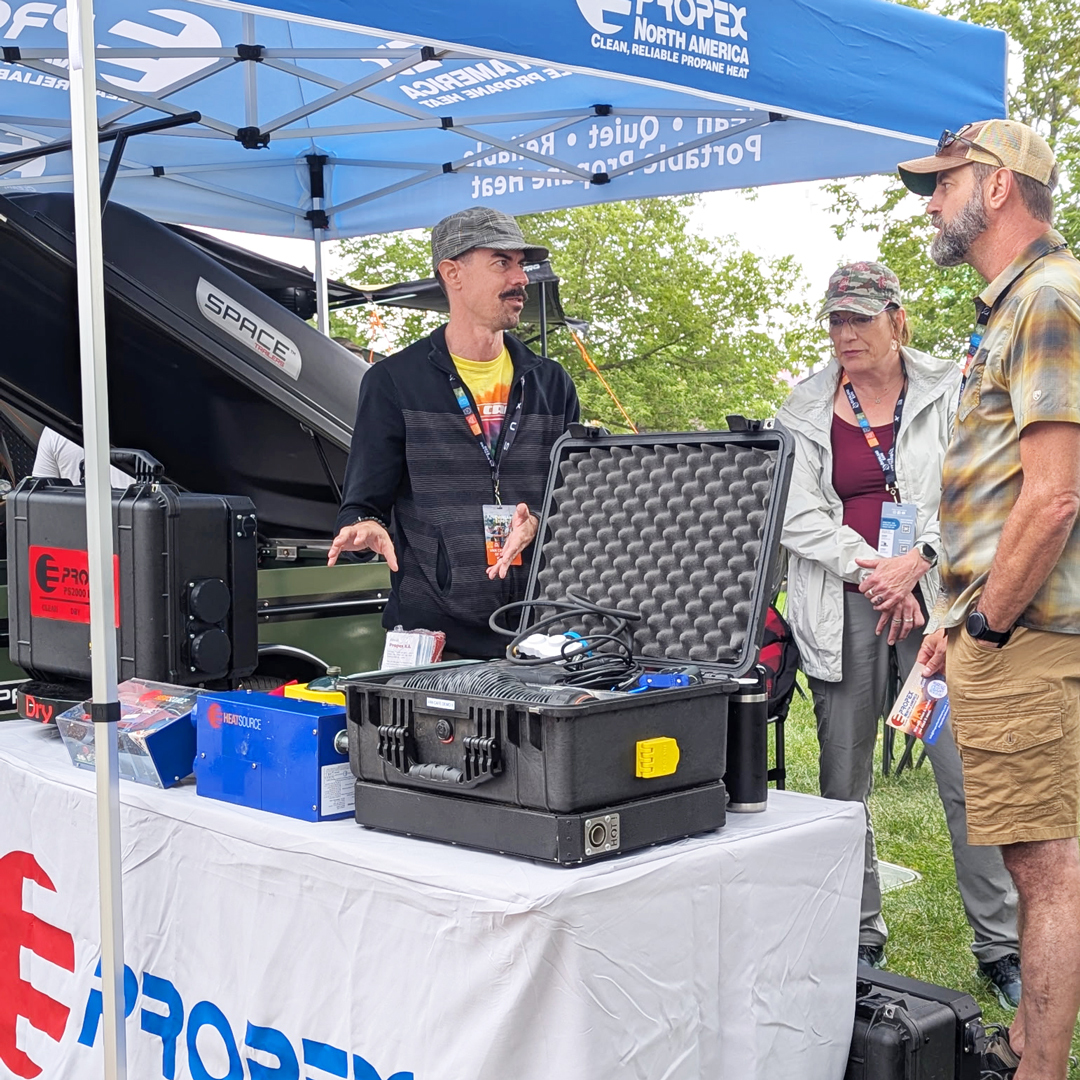 We were also proud to represent as the only U.S. dealer for Propex Heat Source. Alongside the tried-and-true mountable propane heaters, this year we unveiled something brand new: the PS2000 Portable Suitcase Heater — designed and fabricated right in-house in collaboration with UK built Propex Heaters. At just under 40 lbs, this heater drew a lot of attention (and questions!). Expo-goers were especially excited about a propane-based solution for high-altitude heating that doesn’t rely on smelly, finicky diesel systems.